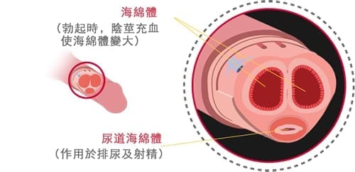 簡單來說,陰莖是由2個位於上部的陰莖海綿體以及1個位於下方的尿道海綿體組成