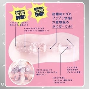 由入口處,「大顆的長肉粒」→「圓圓的肉粒」→「螺旋處女般的地帶」→「子宮地帶」的4階段所組成的構造,