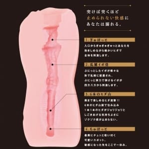 有點黏糊感的柔軟素材的觸感,加上被深處帶的直紋「咕嚕」地纏著的插入感,並不像螺旋處女那緊扣到甚至有點難受的主張橫紋刺激感,要說的話直紋「咕嚕」的觸感是主要的插入感呢。