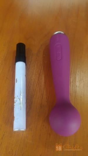 保留了原本的形狀,但變成更易掌控的大小。紫色的外形討好(更有螢光粉紅可選擇),而且形狀有別於傳統震動捧,隨身攜帶也分外安心。