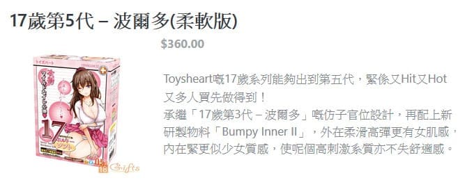 初代17歲約於8年前推出,當時喺日本已經係深受好評,而且由初代開始已經係沿用二層構造設計!話佢係二層構造嘅元老絕對唔過份,Toysheart做二層構造嘅經驗甚至比女優膠嘅品牌仲要多!由技術精湛嘅品牌不斷改良出到第五代嘅膠,其優秀程度不必多講啦。
