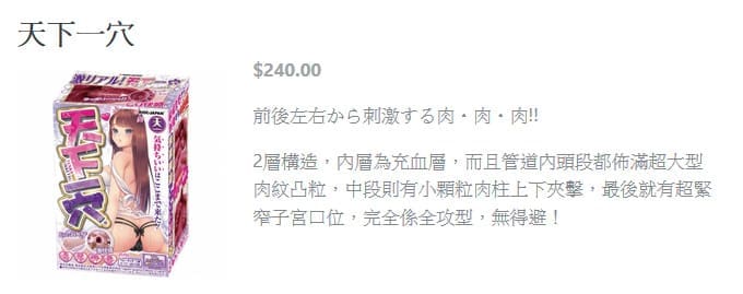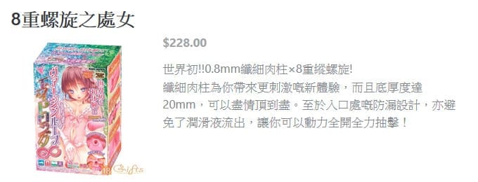 重點商品有少女小穴系列,以及轟動一時嘅仿真口交名器「真實之口」!品牌以純潔無邪嘅少女為主題,飛機杯嘅造形不論係線條同細節,以及手感上都毫不馬虎,當然內部構造都係啦,正正因為咁,耐久度相對會比較低,假如你最後選擇咗Magice Eyes嘅飛機杯,就要記得唔好咁粗暴對待佢啦。