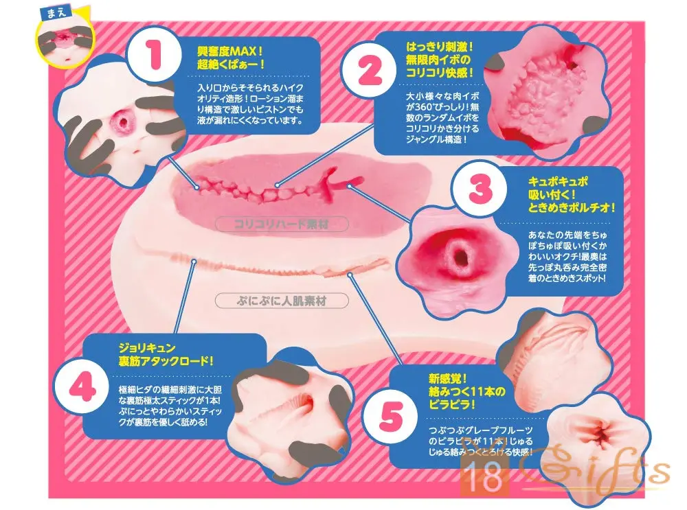陰道設計上用咗都算厚身嘅兩層設計,由解說文字上可得知係偏硬嘅材質,管道設計係肉粒為主,最深處再做咗細細個子宮位。