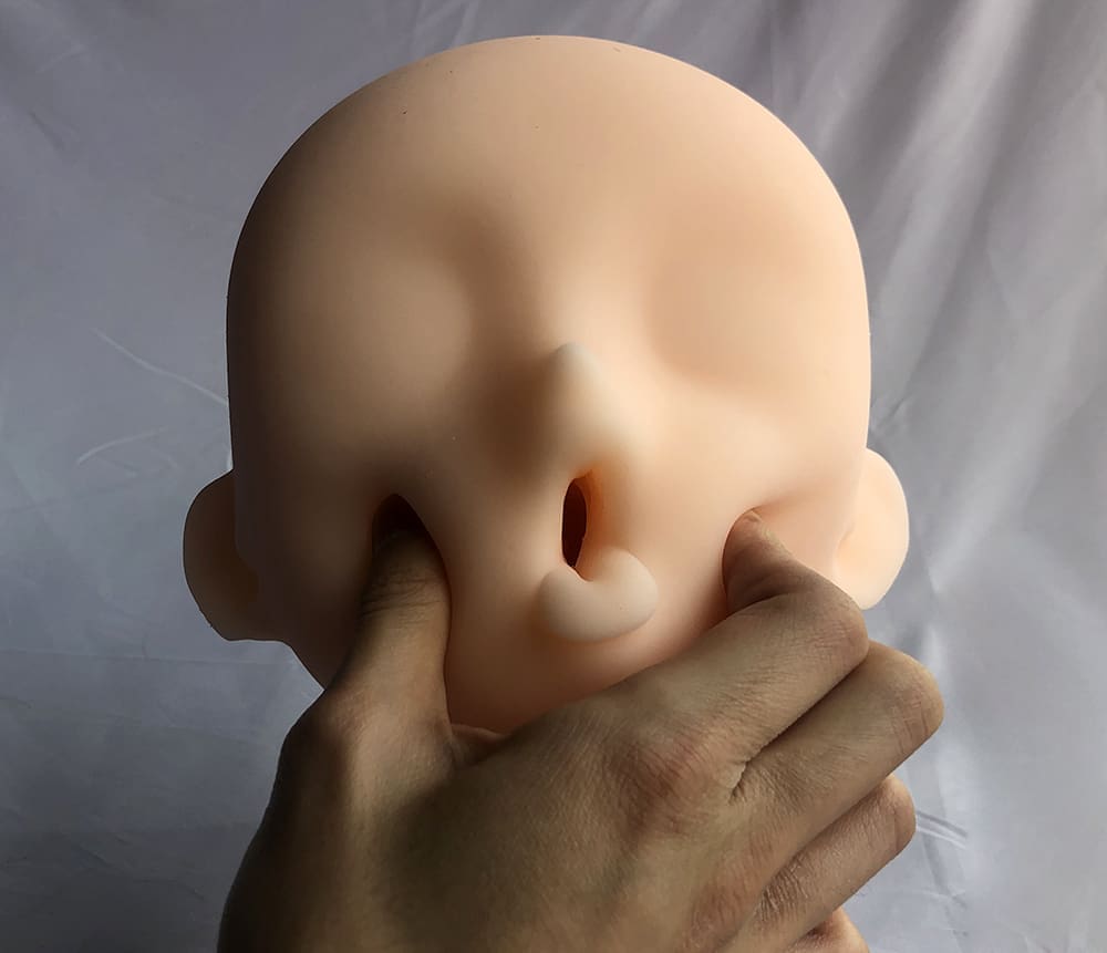 骨架嘅範圍幾乎佔咗成個頭,上半部嘅位置摸落去都係硬硬哋嘅感覺,唯獨係臉頰中間部分無骨架部件,完美表現出真人嘅人體結構。
