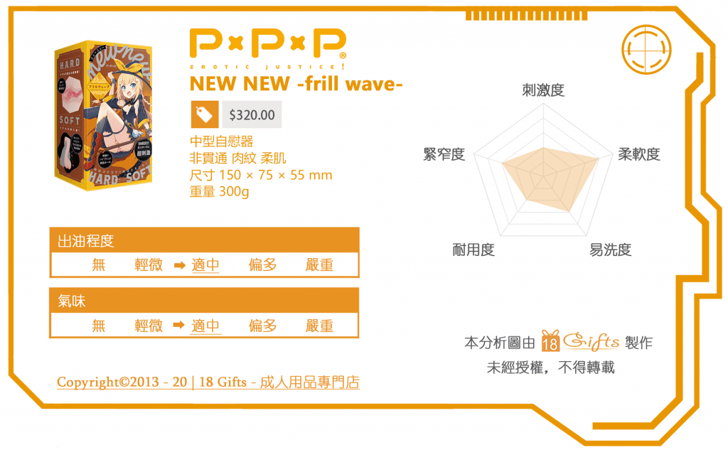 總括而言,NEWNEW Frill Wave係個用落先知乾坤嘅飛機杯,舒適感非常足,同原版有明顯差別,可以話係派生作嘅存在,就算有無玩過原版都值得一試,唯一缺點就係內層真係好薄,不過我諗呢個都係不可抗力因素之一,如果唔係都做唔到呢種嗰種管道效果,唯有就係清嘅時候小心啲啦,要舒服始終要啲代價嘅。