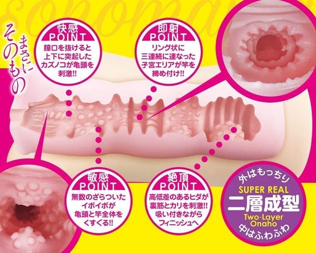 完全將無次元結構嘅優點發揮到出嚟,軟棉棉嘅舒適插入感被外層偏硬嘅素材緊緊包裹住,內部用上柔軟素材又可以清楚感受到肉褶嘅連續刺激,為你帶來稍為急促嘅射精感。