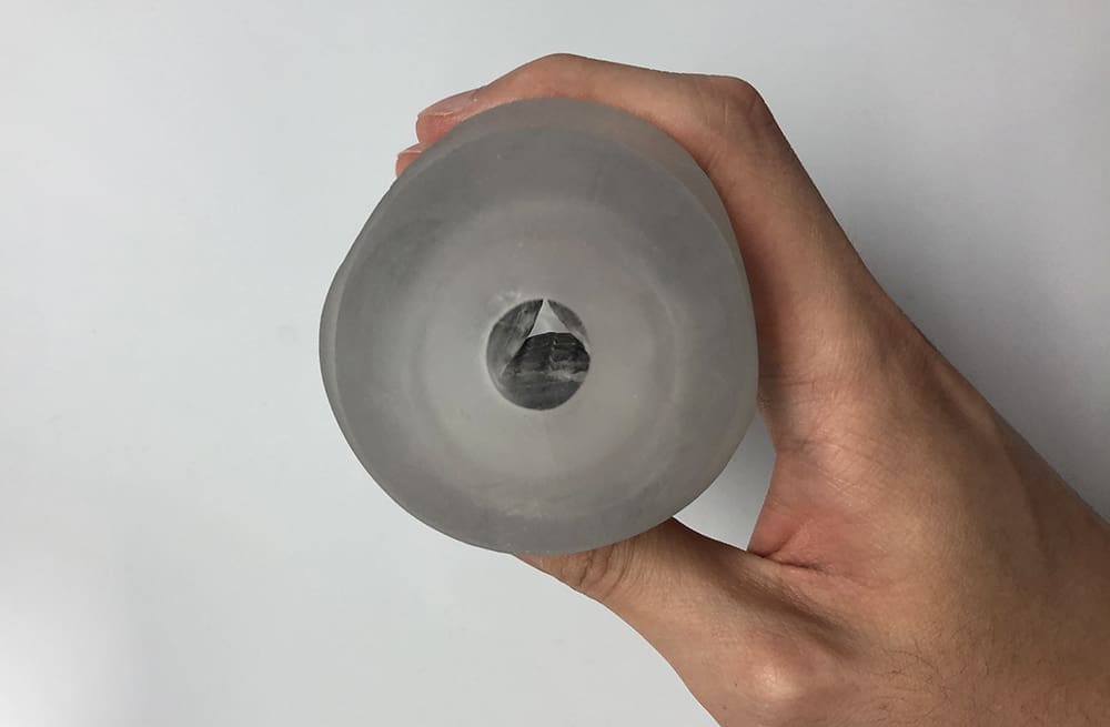 反出嚟之後透明度高咗睇得更清楚,前半部分係網狀紋,而後半部就係肉粒嘅簡單設計,中間嘅版塊構造就好似硬身嘅橡膠素材咁,撳落有啲似陰莖充血後嘅硬度,雖則成個飛機杯嘅紋路設計形狀上同前作無分別,但係呢個硬度嘅改變似乎會對用感造成好大影響呢,換個角度諗,其實坊間嘅軟版硬版杯都係同一個籠換個素材啦。