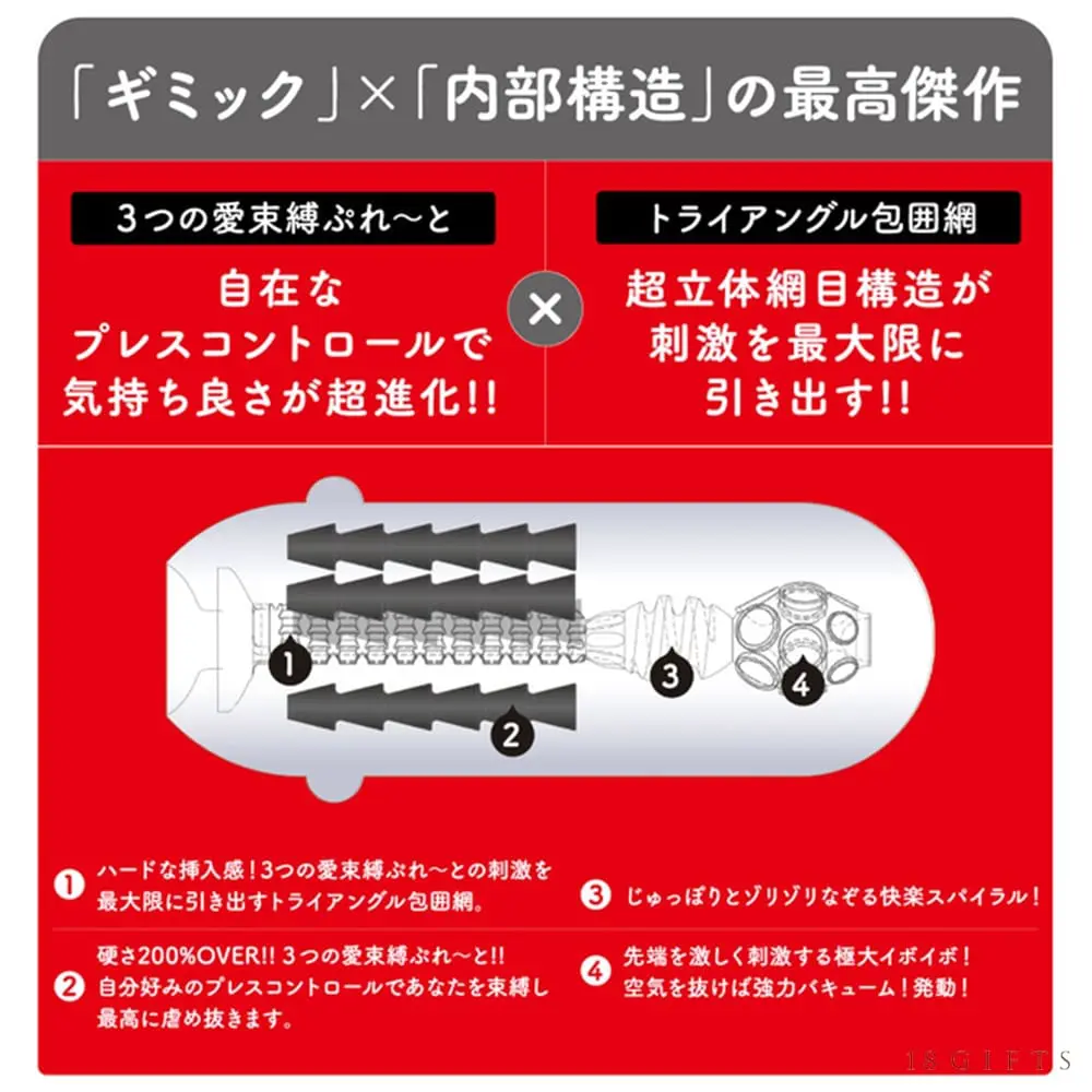 今次都係用返同Ju-C 6一樣嘅「內藏異物構造」,以一年前嘅飛機杯技術嚟講都算係個幾新穎,Ju-C 6就以三種唔同顏色去代表唔同硬度,硬度上分別係20%、60%以及120%,至於今次嘅Ju-C 7就將三個版塊嘅硬度都統一為200% OVER,而內部管道設計係完全一樣,無錯,係完全一樣…