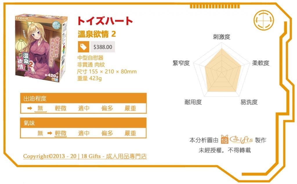 回顧返前作嘅溫泉欲情,又係一推出即上暢銷榜嘅神作,同RIDE JAPAN嘅螺旋處女一樣,以獨特新穎嘅內部構造打響名堂,刺激得嚟又不失舒適感,即係食晒慢玩刺激兩家茶飯,唔好賣就出奇啦。