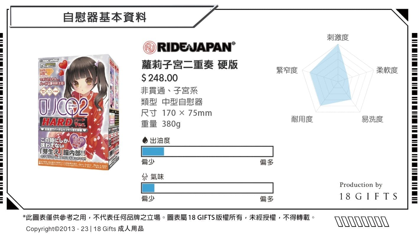 「蘿莉子宮二重奏」係RIDE JAPAN喺大約5年前推出嘅產品,對於一眾老玩家嚟講可能已經置之腦後,但其實佢喺子宮系飛機杯嘅類別中仍然相當受歡迎。