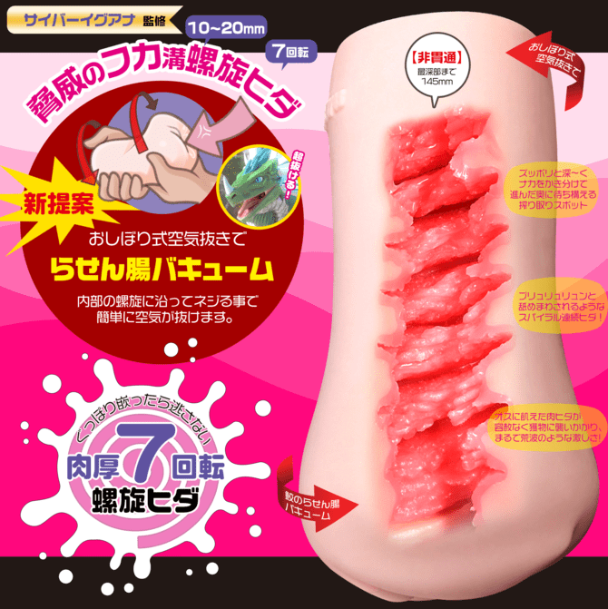 這款產品採用非貫通式真空設計,重現如同毛巾般可擰轉的鯊魚娘七重螺旋皺褶。