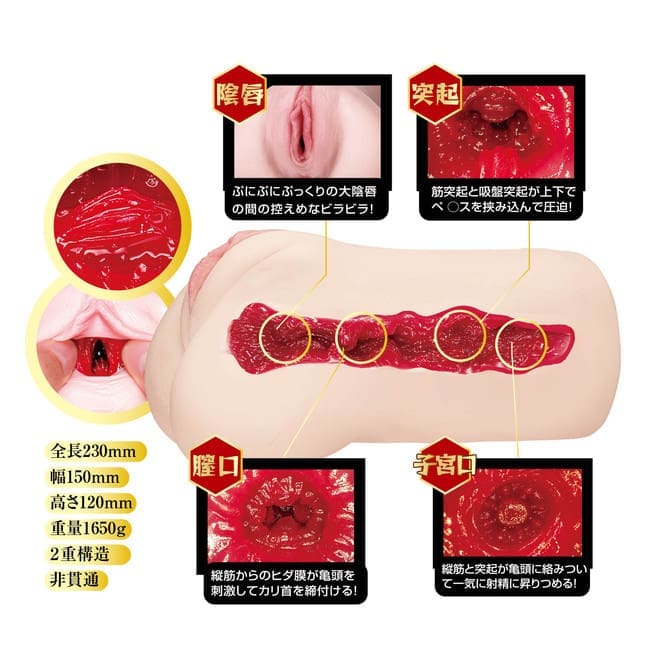 呢款 Deluxe 版名器唔單止徹底追求小宵虎南嘅內部構造同外觀造形,連外層嘅肌膚質感都做到極致柔軟。最正係入面內建咗電動吸引單元,當你插入嗰陣,機器會帶嚟強烈嘅負壓吸啜感,將原本已經好正嘅「生插入」快感再提升一個層次!成 1.65kg 嘅重量級份量,加上非貫通嘅二重構造,等你可以喺小宵虎南嘅體內感受被徹底吸乾嘅滋味!