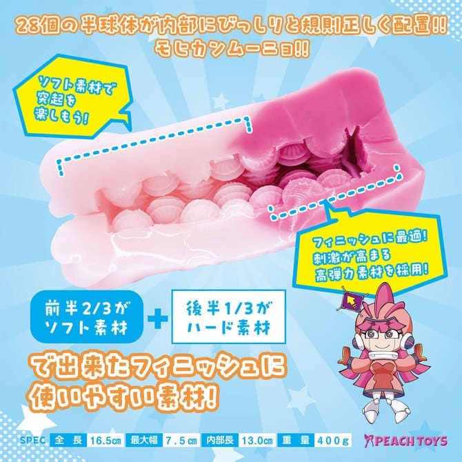 內部設計極為緊密,大型柔軟半球突起排列整齊密集。半球突起表面帶有如山丘般的縱向紋理,進入內部時,能感受到肉與肉之間滑過的獨特快感。