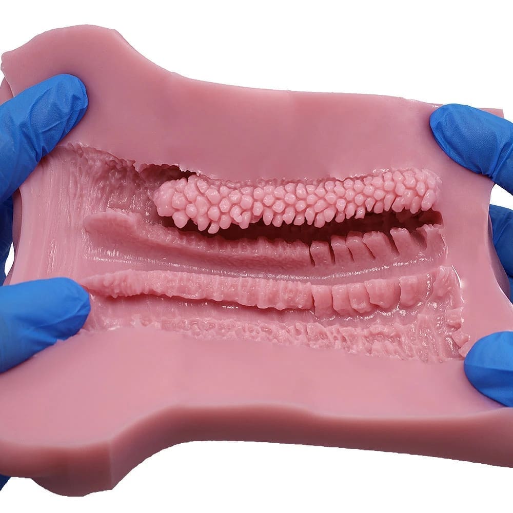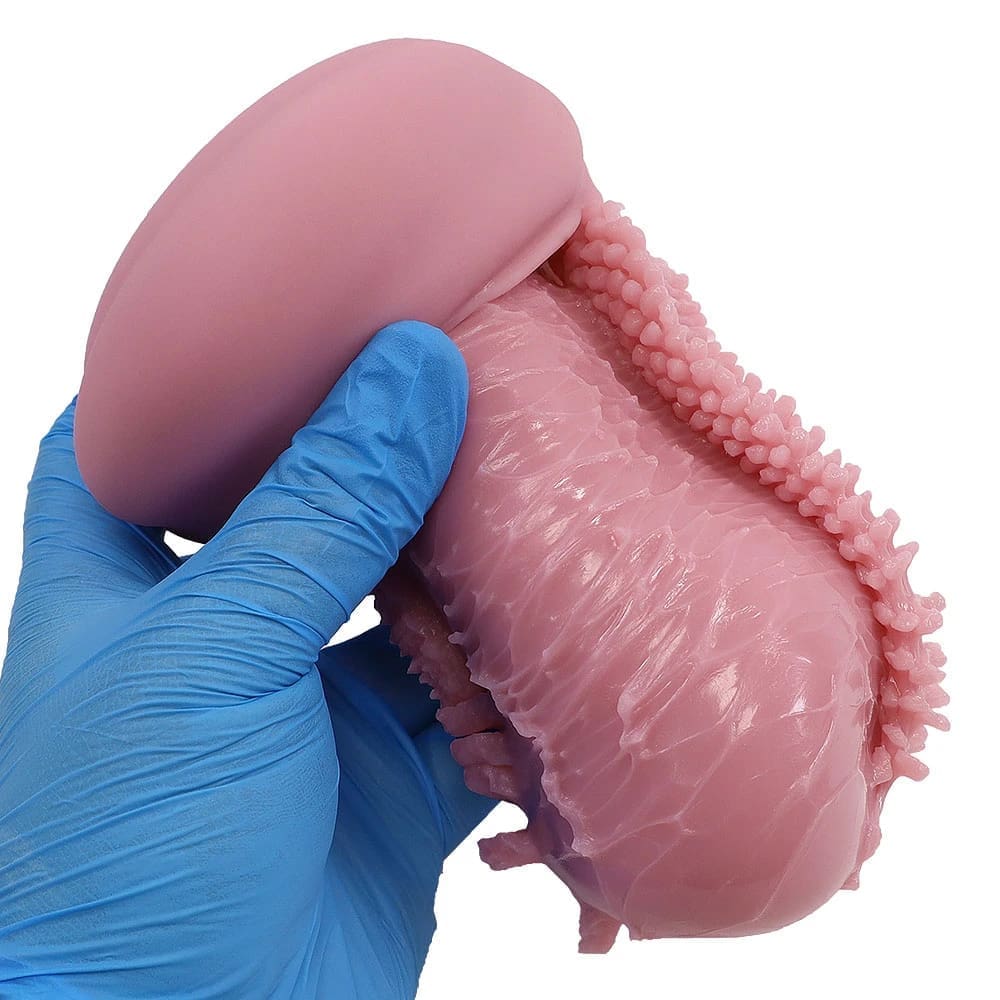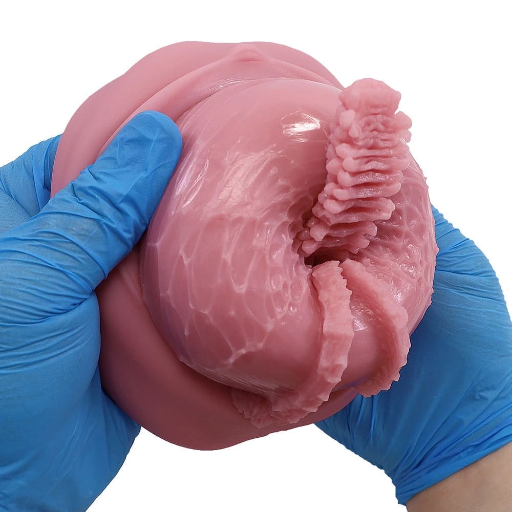 中段設計則採用了有機皺褶與有機突起交織的構造,結合內壁覆蓋的細緻紋理,呈現粗糙與濕滑交錯、宛如某種生物在體內移動的驚奇觸感。