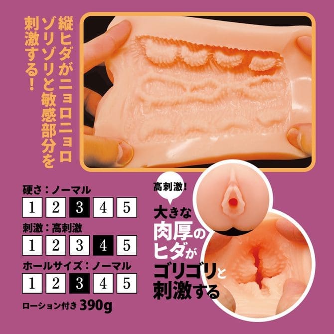 側面和底部設有完全不同的設計。側面是厚實的皺褶會粗糙地摩擦,底部則是縱向的皺褶會刺激敏感部位。