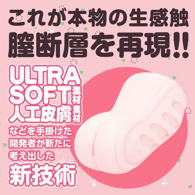 【膣斷層】採用極限柔軟的ULTRA SOFT材質,通過兩種不同材料包覆,創造出【黏膜層】【脂肪層】【肌肉層】的效果,進一步提升彈性、柔韌性及伸縮性,重現柔軟且充滿年輕感的膣斷層觸感!