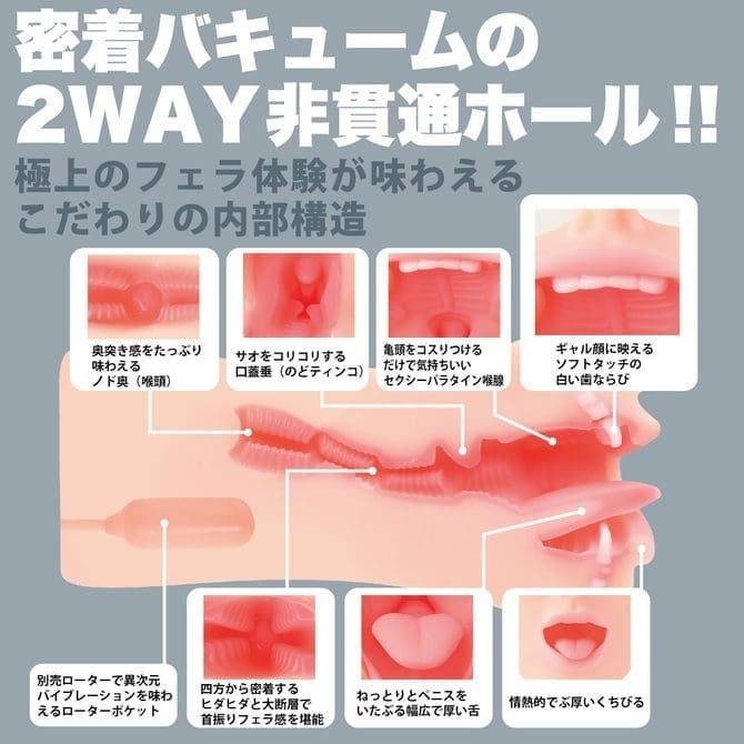 這款手動系列的最新作品透過視覺和觸感雙重呈現出真實感,通過仔細的征詢和觀察,重現了真實口交的感覺,並提供非貫通的密着型真空通道。