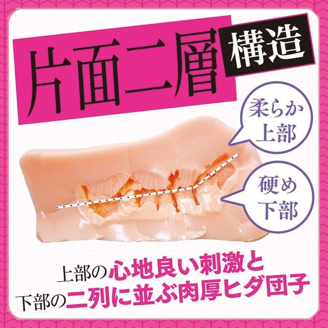 上部使用柔軟的材料,下部則採用較硬的材質,以緩和上部的過度刺激,並重視舒適感;而下部則有兩列大型肉厚的波紋球狀結構,以急角度快速下沉,帶來持續的加速和刺激。
