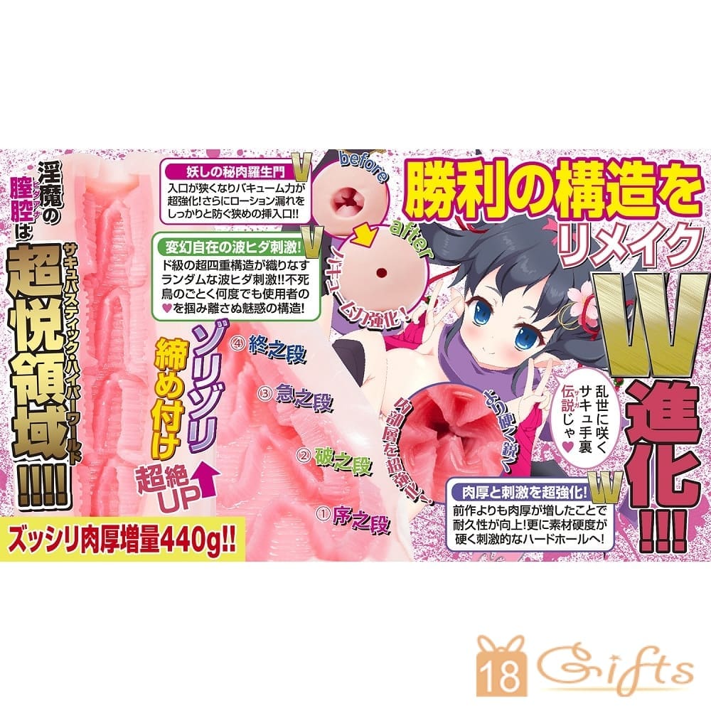 半熟淫魔外傳 x 觸手裏劍 超協作 2層TYPE嘅超極強化版﹗二層構造使刺激感更強,而且肉厚亦進一步加強到440g。快啲嚟體驗吓淫魔系列嘅高彈觸感,及触手裏剣嘅招牌肉柱啦﹗