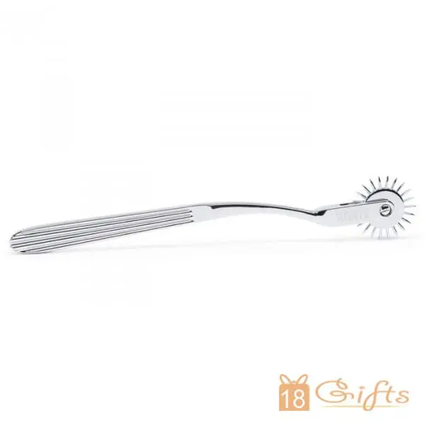 Simple design, perfect for all levels of sensory experimentation. 22 spikee Wartenberg metal pinwheel for thrilling sensory play. Designed for couples. Comes with a satin storage bag. Logo eteched on handle.
