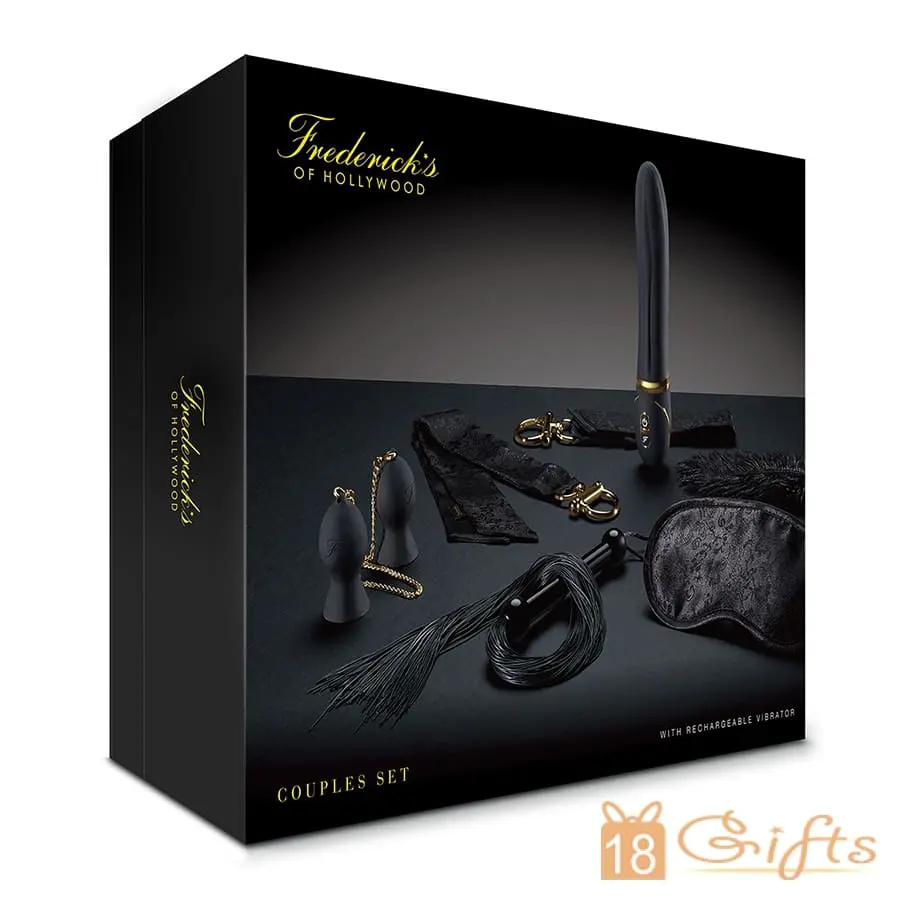 Frederick’s of Hollywood出品的高級SM套裝,專為束縛入門者而設,套裝含6件情趣用品,包含:幼身G點棒、束縛緞帶(可作手/腳束縛用),、乳頭吸啜器、緞質眼罩、低痛感矽膠鞭、調情羽毛棒,助你與伴侶享受束縛的最大樂趣,束縛初體驗就此展開!