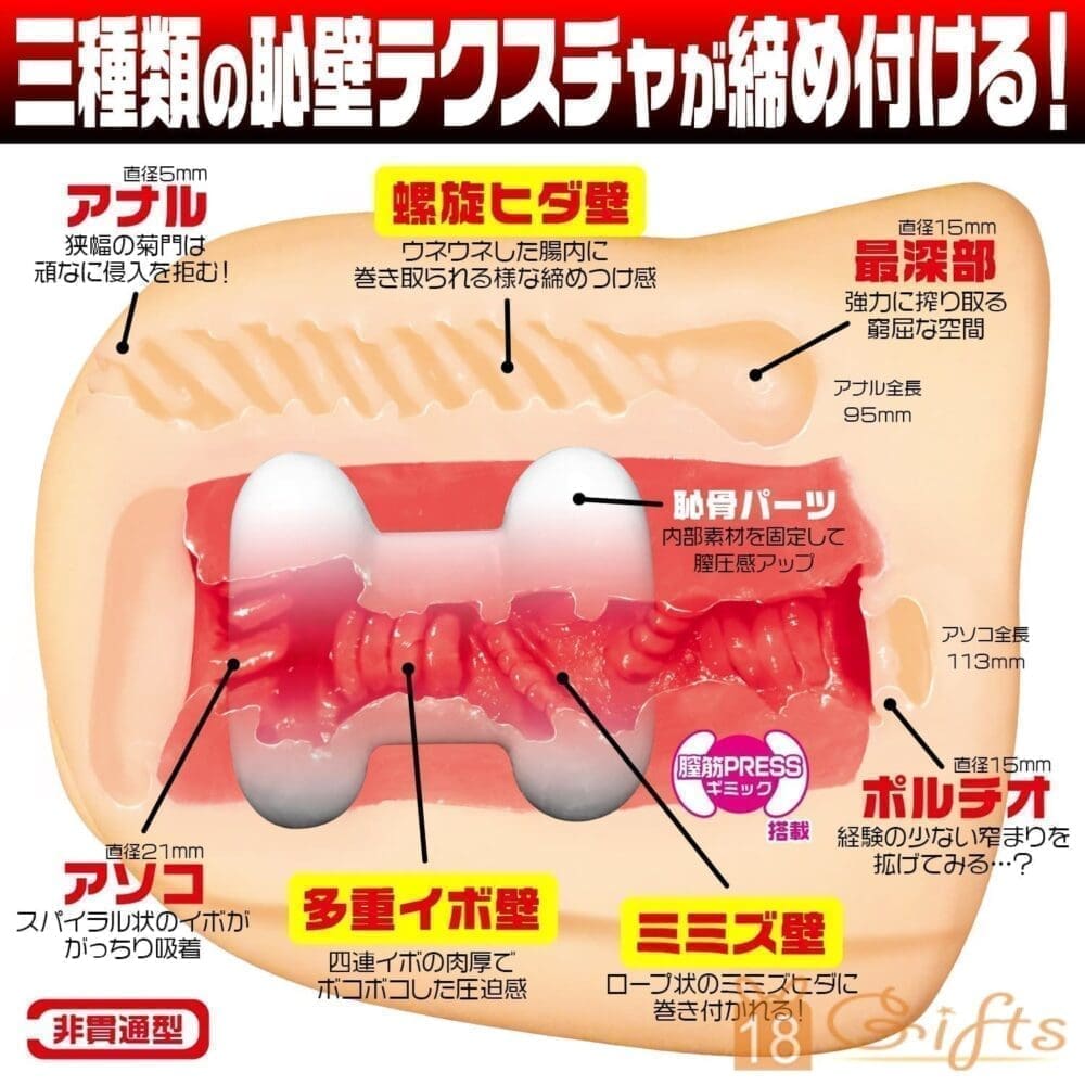 壁中少女露出屁屁,2穴任你盡情砌!1.2KG超肉厚,2穴設計,仲有置入仿恥骨,單睇呢3樣嘢已經係物超所值!佢嘅穴門仲有大凸粒、4連凸紋、肉筋及最後收窄;而菊門亦有緊窄入口、螺旋肉壁;可謂完全滿足晒你不同嘅慾望。