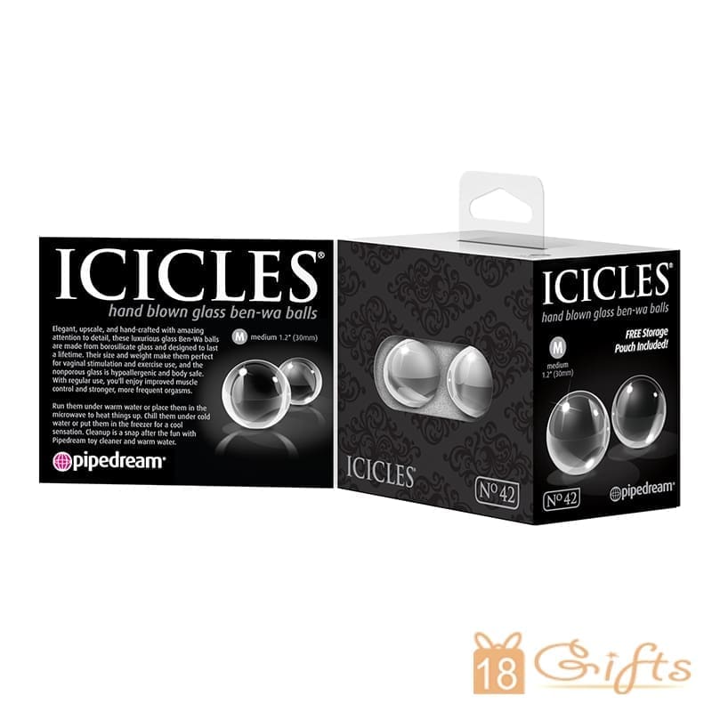 美國 Icicles 出品奢華手工玻璃製品,無拘束玻璃收陰球,可同時作「情趣用品」及「保健收陰」的用途,玩法多變,針對女性的陰道和骨盆肌肉而設計,可用作骨盆腔肌底運動、預防陰道鬆弛等。
