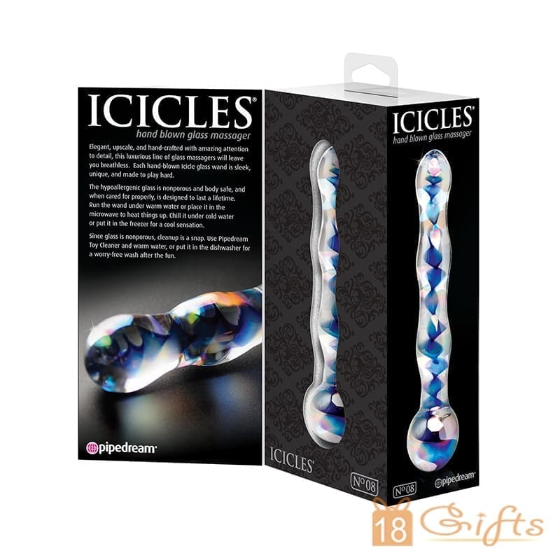 美國 Icicles 出品奢華玻璃製按摩棒系列,Luxury glass dildo 登場!No.8 繁複手工玻璃藝製品,玻璃按摩棒內有獨特花紋,猶如藝術品般,適合初階、中階或高階使用者,獨特玻璃觸感給你敏感地帶全新快感。 Icicles 手工玻璃耐用,適合按壓G點,質感光滑、堅硬,觸感一試難忘。