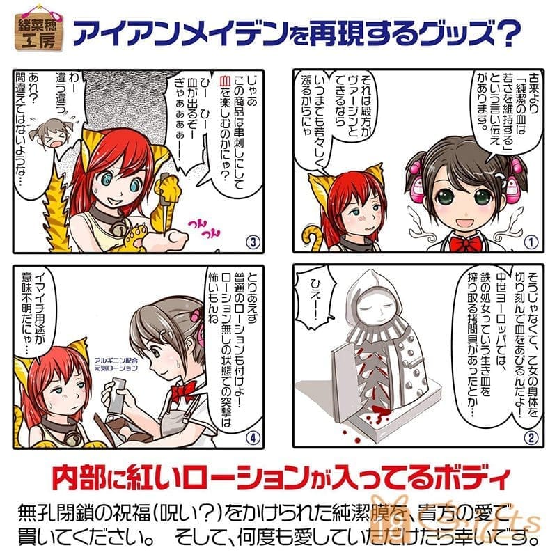 產品設有無孔薄膜,於初次使用時可感受破膜之快感,配合附送之落紅潤滑液,完全重現破處之一刻!加上管道仿如處女般緊窄,刺激度十足,而且於底部更有一薄膜,弄破後就可變成貫通式,更多玩法。