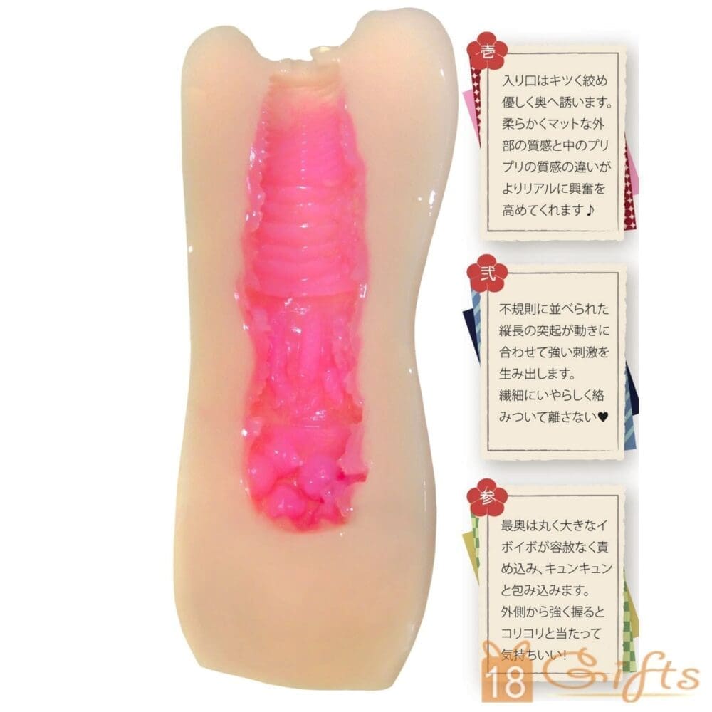 下町生娘工作於大城市的女僕cafe,擁有嬌人巨乳,十分樂意為主人服務!她的蜜穴亦非常特別,兩層結構,高彈物料,仲有仿陰蒂位,不同體位會感受到不同紋路!綺麗色調的管道有3重紋路,包括橫紋、小肉條及大量肉粒,最後的凸粒製造刺激感。