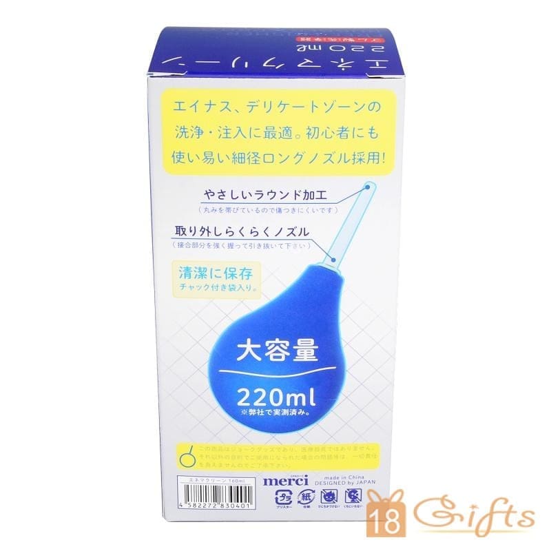 清洗後庭用,長咀設計更易用於後庭或直腸清潔,220ml特大容量更方便!適合初階及高階人士使用。質感軟硬度適中,有彈性,亦容易清潔。可自行注入或放置清潔液體於注射容器中,如暖水/甘油成份的後庭清洗液等,隨個人喜好,更安全安心。
