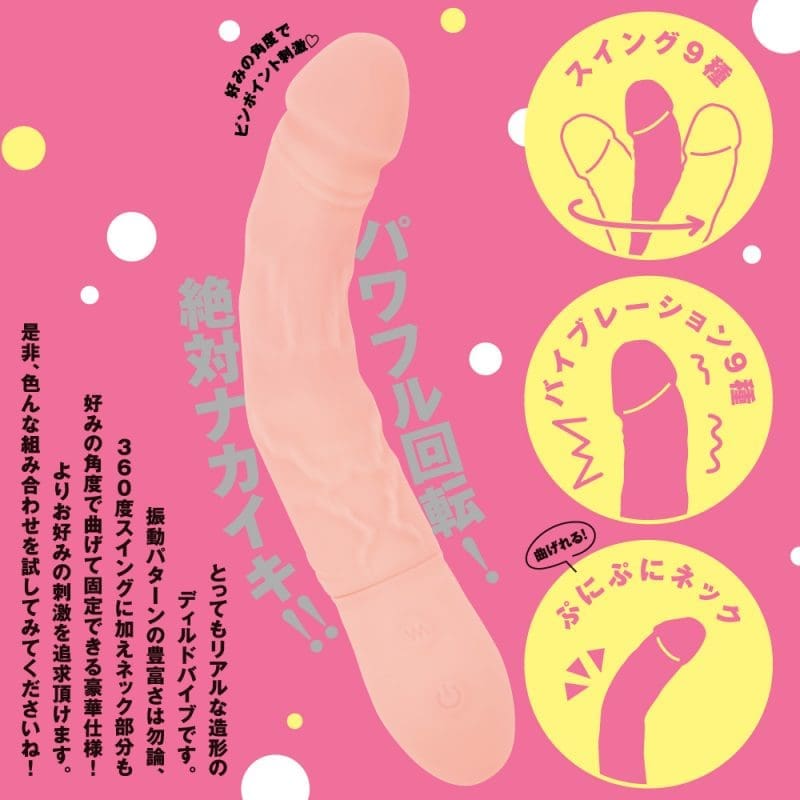 是一款非常逼真的假陽具按摩棒。當然除了豐富的振動模式外,還有可以360度擺動,頸部還可以彎曲固定在所需角度的豪華規格!