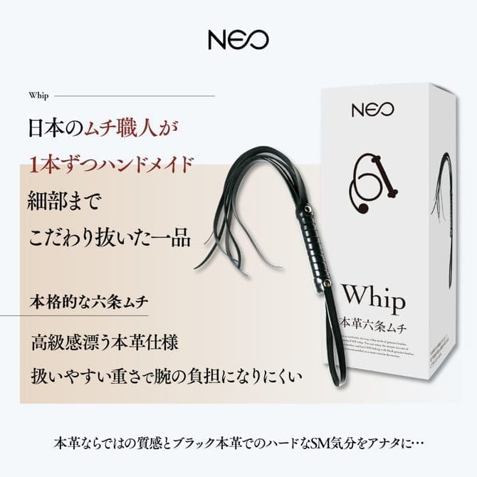 這款以真皮為材料的鞭子,散發著高級感和正統氣息,是由日本的鞭子手工藝師一根根手工製作而成,細節處處精益求精,是一件手感輕巧且易於操控的產品。這款鞭子所屬的老牌SM製造商已有30年以上的歷史,而他們的新品牌「NEO」也帶著同樣正統的元素誕生了!