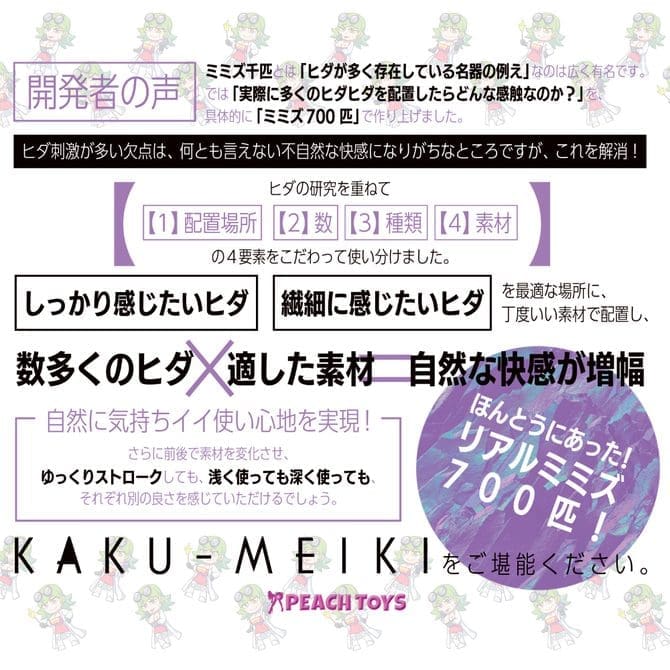 然後,這實際上會是什麼感覺呢?這次PEACH TOYS將以「700匹蚯蚓」為題認真製作。