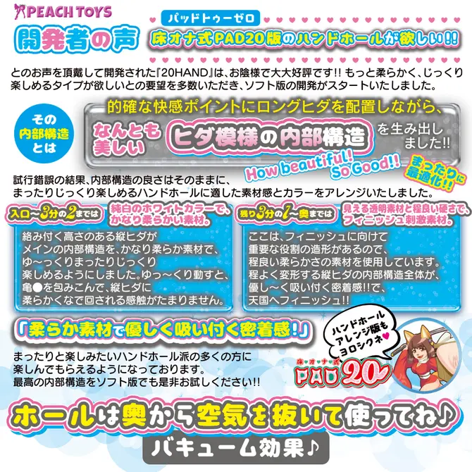 將「置床式 PAD20」的內部結構轉換成手持型自慰器的「20HAND」推出白色的 SOFT 版本!更柔軟更過癮!