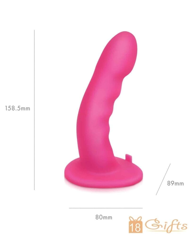 陽具本體只有169.8G重,非常輕巧,微微彎曲的設計能更易刺激G點或P點,棒身底部為吸盤設計,拆卸後可獨立使用,方便清洗。而穿戴褲由軟身物料製造,加上可調校設計,腰圍最大可擴至67″,無論男士或女士也適合穿著。