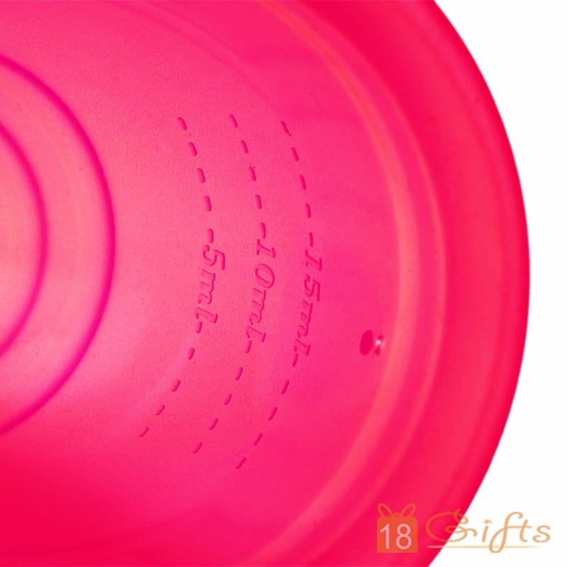 Ruby Cup物料為100% 醫學級矽膠富有彈性,放進陰道後會自然張開,不必擔心月經杯在陰道內摺疊。Ruby Cup擁有圓滑杯身,設計實用,上寬下窄,方便女士們把月經杯從陰道拿出。而且杯柄貼心的設有防滑紋,如覺得太長可以把底部按個人喜好,可以按照矽膠線剪短底柄,剪出適合自己的長度。 *注意: 切勿剪穿底部。